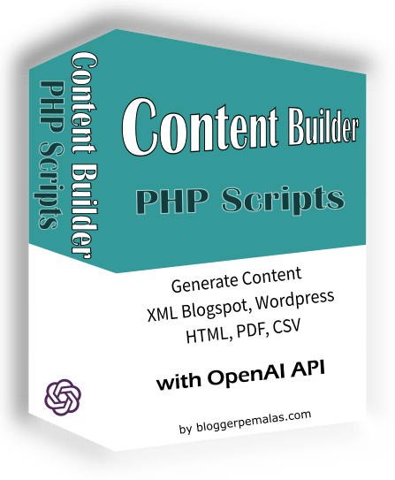 PHP Scripts untuk Membuat Konten dalam bentuk File XML Blogspot, XML Wordpress, HTML, PDF, CSV, TXT Content dengan OpenAi API Demo Scripts User: demo Password: password